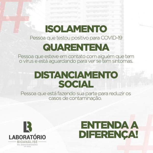 Agora que você já sabe a diferença entre uma coisa e outra, pratique o DISTANCIAMENTO SOCIAL para não ficar em QUARENTENA e precisar de ISOLAMENTO. Faça sua parte!